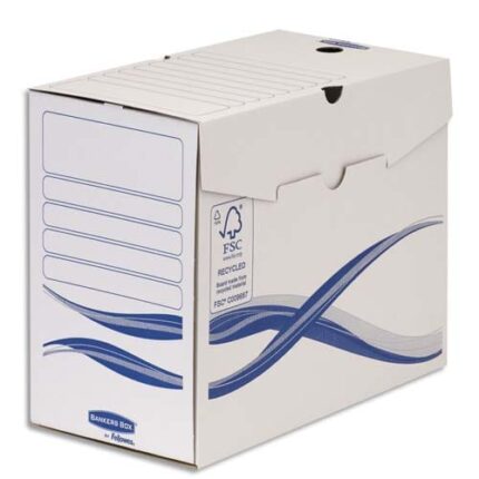 BANKERS BOX Boîte archives dos 20cm SYSTEM, montage automatique, carton recyclé Blanc/Bleu