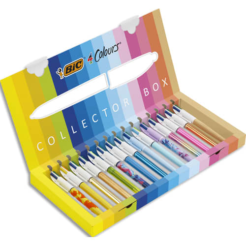 BIC Coffret de 15 stylos bille 4 couleurs rétractables Collector Box. Pointe Moyenne 1mm et Large 1,6mm