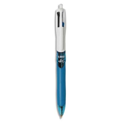 BIC Stylo bille 4 couleurs rétractables avec Grip Classique bleu. Pointe moyenne 1mm. Encre classique