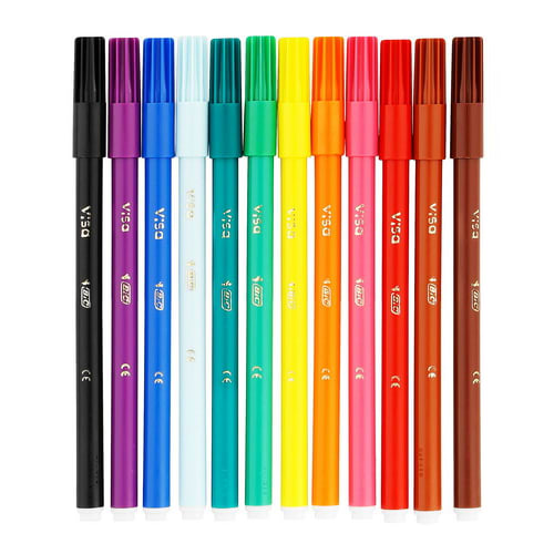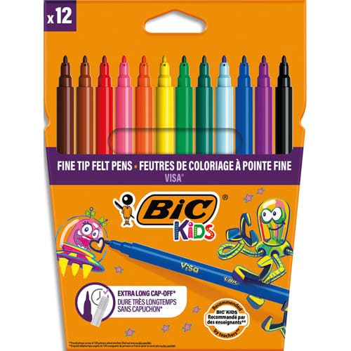 BIC KIDS Visa Feutres de Coloriage à Pointe Fine – Couleurs Assorties, Etui Carton de 12