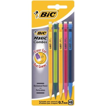 BIC Blister de 5 porte-mines Matic Fun. Mines HB de 0,7mm. Couleurs Assorties