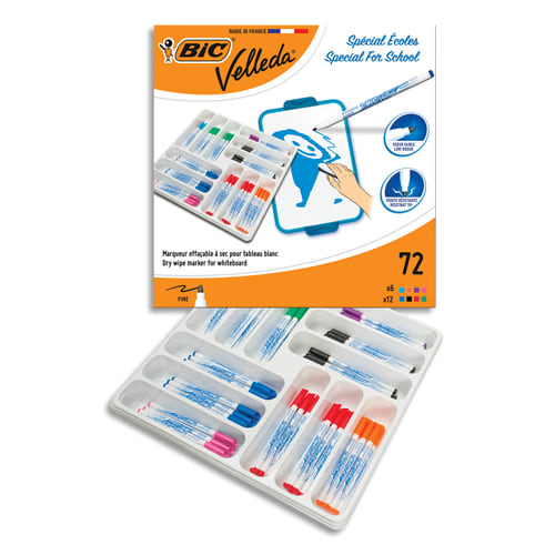 BIC Velleda Feutres 1721 pour Tableau Blanc Effaçables Pointe Fine – Couleurs Assorties, Classpack x72