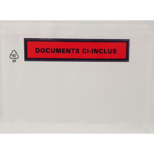 Pochette d’expédition. Idéale pour l’insertion des documents d’expédition et de transport. 40 microns, papier siliconé 46 g/m2.