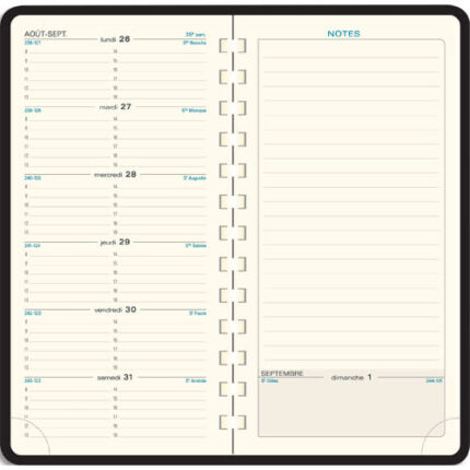 QUO VADIS Agenda Ministre spiralé Décembre à Décembre – format 16×24 cm couverture Impala Noir