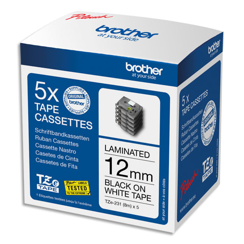 BROTHER Pack de 5 rubans TZE231 noir sur blanc 12mmx8m TZE231M5