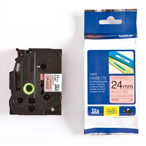 BROTHER Ruban pour PTOUCH laminé Noir/Orange fluo 24mmx5m TZEB51