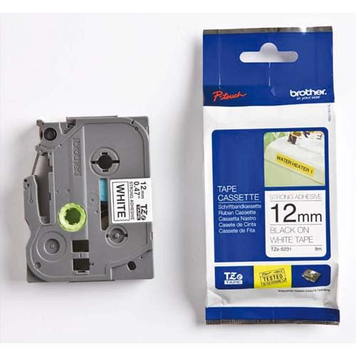 BROTHER Ruban Ptouch adhésif puissant 12mmx8m Noir/Blanc TZES231