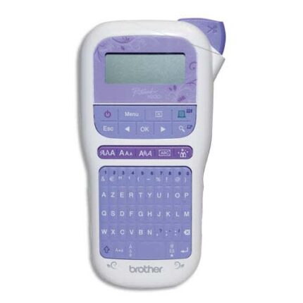 Parfaite pour l’organisation de la maison ou pour les préparations de la rentrée scolaire. Large variété de polices et de cadres, de symboles. Ecran LCD, choix parmi 3 polices, 10 cadres, 200 symboles. Utilise étiquettes Btag de 12 mm. Cutter manuel intégré. Résolution 180 dpi/64 dots, vitesse 9mm/sec. Hauteur d’impression 7 mm.