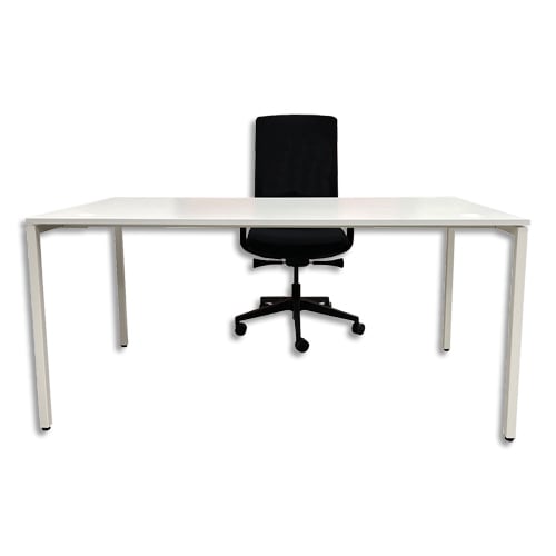 Bureau droit 4 pieds PRIMA 160 x 140 cm. Hauteur 73cm. Plateau mélaminé 19mm Blanc et piètement blanc