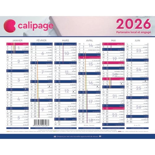 CALIPAGE Calendrier bancaire Calipage, 6 mois par face soit 12 mois – format : 21 x 26,5 cm