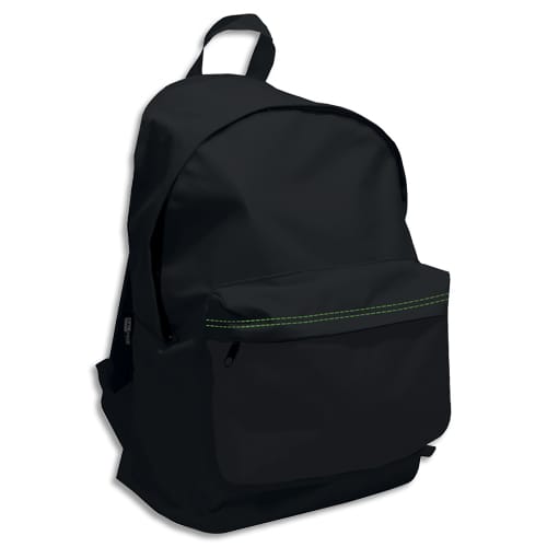 CALIPAGE Sac à dos 1 compartiment (40x29x19cm)+Pochette Laptop (26x21cm). Coloris Noir & surpiqûre Vert
