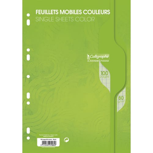 CALLIGRAPHE Copies simples Vert perf 2 trous 80g 100 pages grands carreaux Seyès format A4. Film-CAL 7000