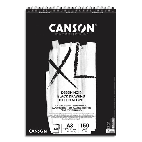 CANSON Bloc de 40 feuilles de papier XL DESSIN Noir 150g A3