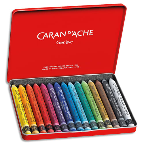 CARAN D’ACHE Boîte métal de 15 couleurs assorties Pastel à la cire aquarellable CLASSIC NEOCOLOR II