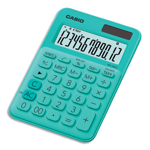 CASIO Calculatrice de bureau 12 chiffres Verte MS-20UC-GN-S-EC