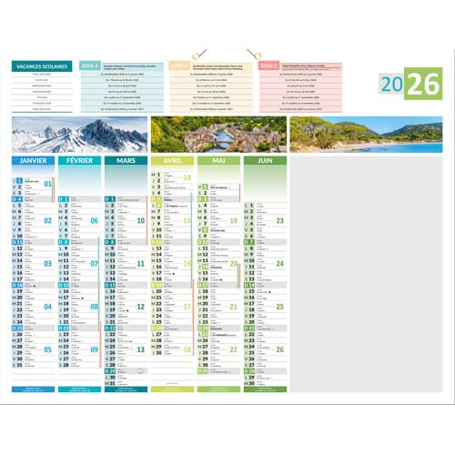 Effaçable, Janvier à Décembre : 6 mois/face. Format : 43 x 55 cm.