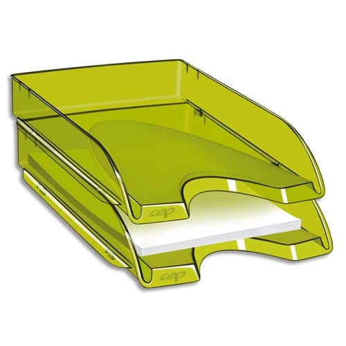 CEP Corbeille à courrier Happy Vert bambou transparent. Dimensions : L34,5 x H6,4 x P26 cm