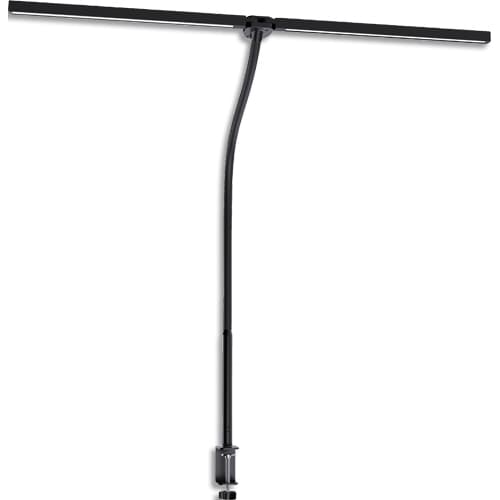 Lampe avec deux modules LED mobiles et orientables. Les deux bras peuvent effectuer une rotation afin de diriger le module LED vers l’arrière. Surface d’éclairage importante. Eclairage asymétrique antireflet et antiéblouissement. Fixation à une pince. Puissance maximale 20W. Tension 24V-1A. Matériau acier /ABS. 100% recyclables. Température de couleur 3000K-5500K. Lumen 1100lm. Type de LED SMD/2835. IRC >95. Durée de vie des LED : 50 000 heures. Interrupteur, variateur d’intensité et de couleur via une télécommande. Dimensions : H 70cm, largeur des deux modules LED « ouverts » : 80 cm. Alimentation : 230V câble électrique standard. Pile CR 2032 pour la télécommande : non incluse.