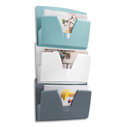 CEP Lot de 3 Corbeilles murales RIVIERA, format A4+, charge 2,5 kg – Dim (lxhxp) : 36,1 x 71,5 x 8,6 cm