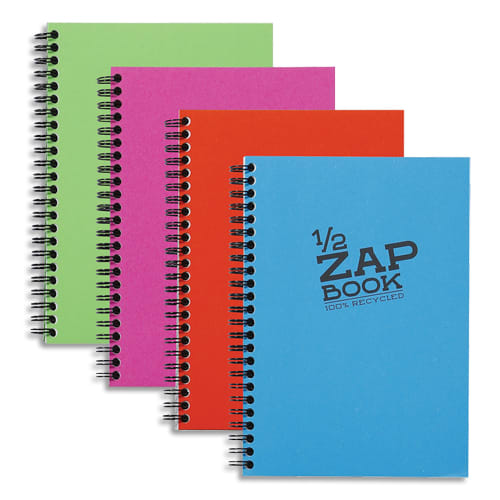 CLAIREFONTAINE Bloc 1/2 ZAP BOOK dos spiralé grand côté A5 160 pages unies Couvertures papier assorties