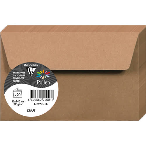 CLAIREFONTAINE Paquet de 20 enveloppes 120g POLLEN 9x14cm. Coloris Kraft