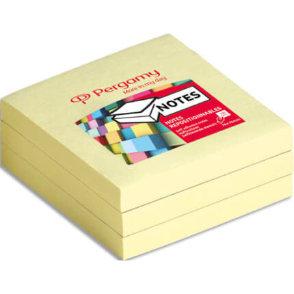 PERGAMY Bloc de 100 feuilles repositionnables dimensions 7,6×7,6cm. Coloris Jaune