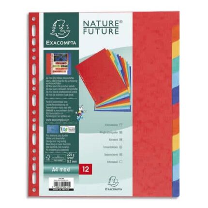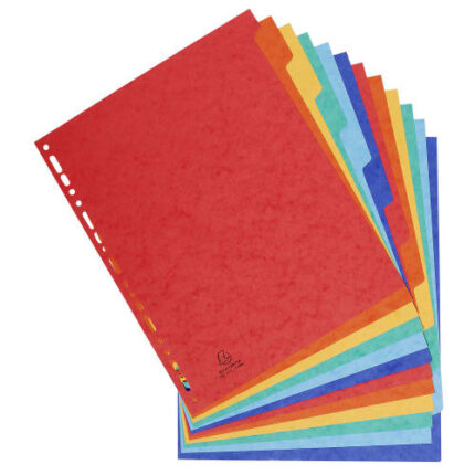 EXACOMPTA Jeu d’intercalaires 12 positions format 24x30cm pour pochettes perforées. Carte lustrée 3/10e.