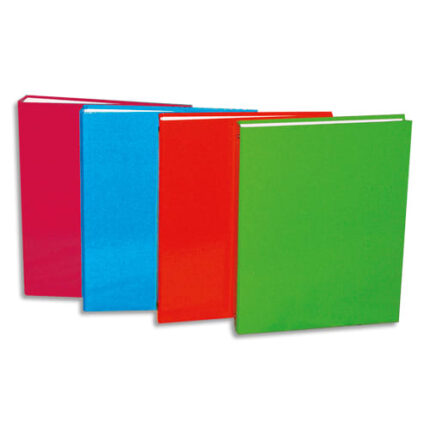 Classeur 4 anneaux 26x32cm rembordée pelliculé 18/100°. Dos 4 cm. Coloris assortis