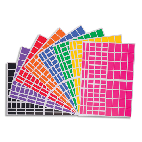 CLEOPATRE Sachet de 18 planches de gommettes rectangles 3 tailles. 6 couleurs 3 planches par couleur.