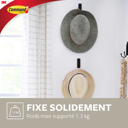 COMMAND Crochet simple adhésif 3M moyen en métal nickel noir – poids supporté 1,3kg – s’enlève sans trace