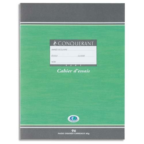 Soyez le premier à laisser votre avis sur “CONQUERANT C7 Cahier de brouillon 17×22 cm 48 pages 56g grands carreaux Seyès. Couverture carte” Annuler la réponse