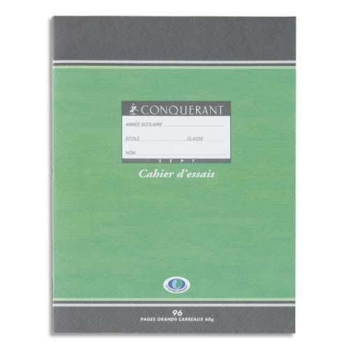 CONQUERANT C7 Cahier d’essais 17×22 cm 96 pages 60g grands carreaux Seyès NF. Couverture carte