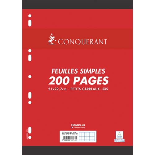 CONQUERANT C7 Feuillets mobiles 21×29,7cm 200 pages petits carreaux Blancs 90g. Sous sachet