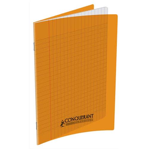 CONQUERANT C9 Cahier piqûre 17x22cm 48 pages 90g grands carreaux Seyès. Couverture polypropylène Orange