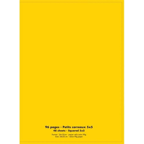 CONQUERANT C9 Cahier piqûre 24x32cm 96 pages 90g quadrillé 5×5. Couverture polypropylène Jaune