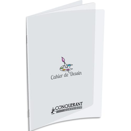 CONQUERANT Cahier de dessin piqûre 32 pages unies 90G 17x22cm. Couverture polypro incolore