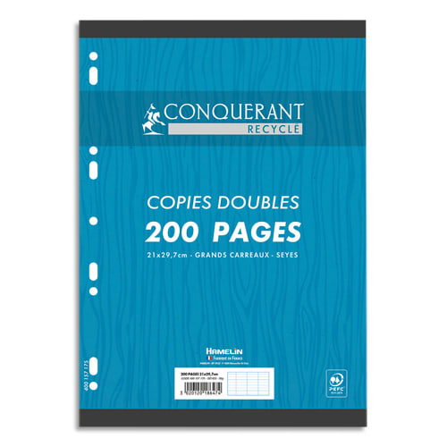 CONQUERANT Copies Doubles Blanches Recyclées A4 Grands Carreaux Seyès 200 Pages Sous Film