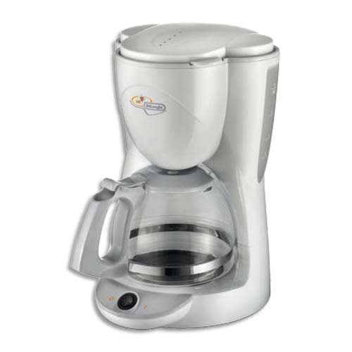 DELONGHI Cafetière à filtre Blanche 1000W, 10 tasses, verseuse verre, anti-gouttes Dim L26 x H35 x P21 cm