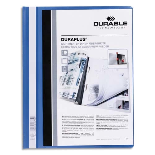 DURABLE Chemise de présentation Duraplus à lamelle A4 – personnalisable + gouttière de passage – Bleu