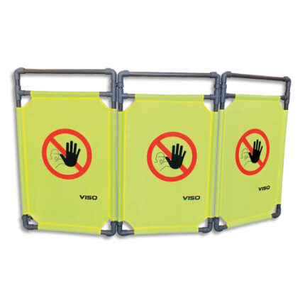 VISO Barrière de travaux 3 vantaux en PVC et polyester Gris jaune, extensible – Dim L170 x H100 x P2,6 cm