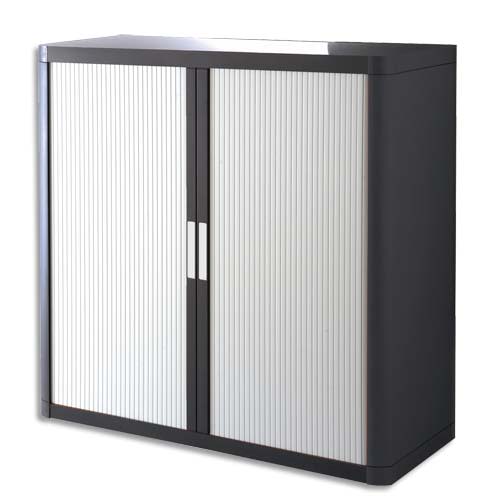 EASYOFFICE Armoire démontable corps en PS teinté Noir Blanc – Dimensions L110xH104xP41,5 cm
