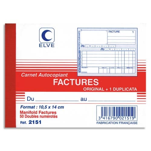 ELVE Manifold autocopiant facture format 10,5x14cm, 50 feuillets dupli