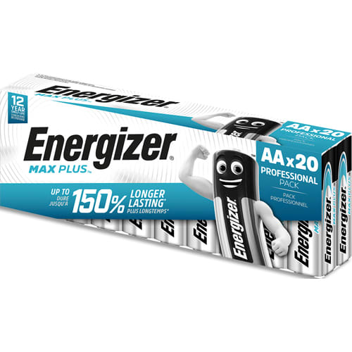 Pile alcaline Max Plus AA x 20, notre pile alcaline qui dure le plus longtemps.