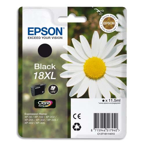 EPSON Cartouche Jet d’Encre Claria Home Noir XL »Pâquerette » 18 (T1811) – C13T18114012