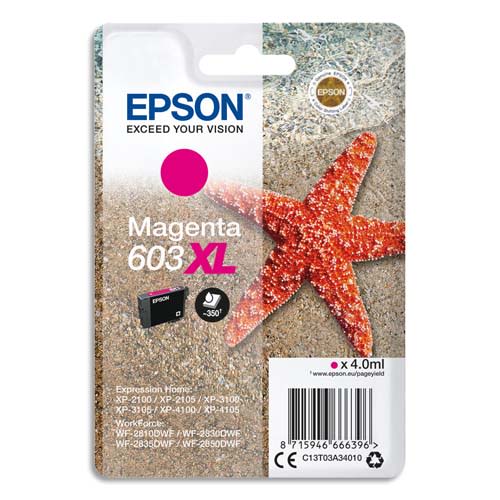 EPSON Cartouche Jet d’Encre Magenta XL »Etoile de Mer » 603 (T03A3) – C13T03A34010