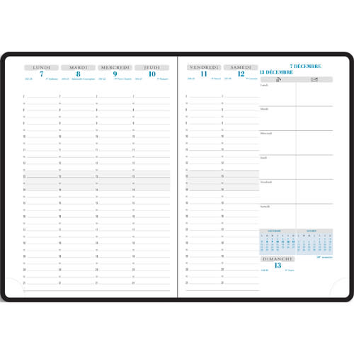 QUO VADIS Agenda EXDI Bureau Décembre à Décembre Eco 1 sem/2 pages+notes, format 21×29,7cm PVC Noir