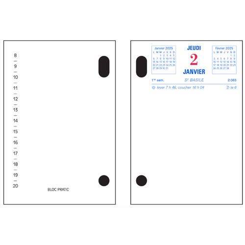 EXACOMPTA Bloc éphéméride date à droite, horaire et rendez-vous à gauche Janvier à Décembre