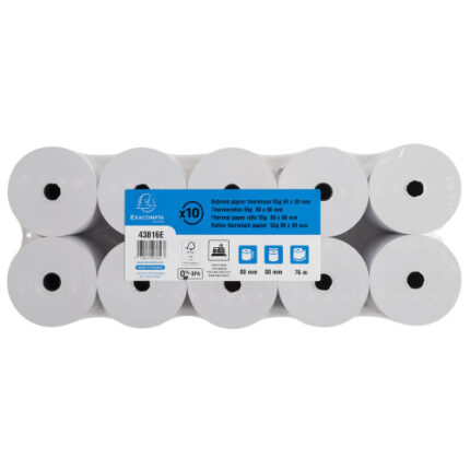 EXACOMPTA Bobine caisse standard 80x72x12mm, 76 mètres, papier thermique 1 pli sans Bisphénol A 48g FSC