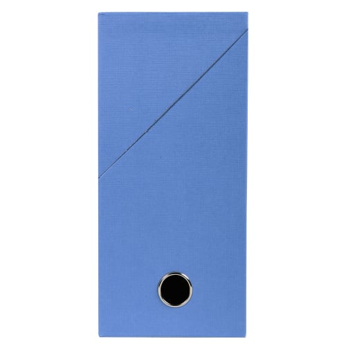 En carton rigide recouvert de papier toilé teinté, cette boîte transfert est très pratique pour archiver proprement tous les dossiers volumineux.