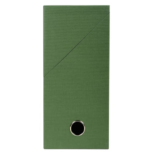 En carton rigide recouvert de papier toilé teinté, cette boîte transfert est très pratique pour archiver proprement tous les dossiers volumineux.